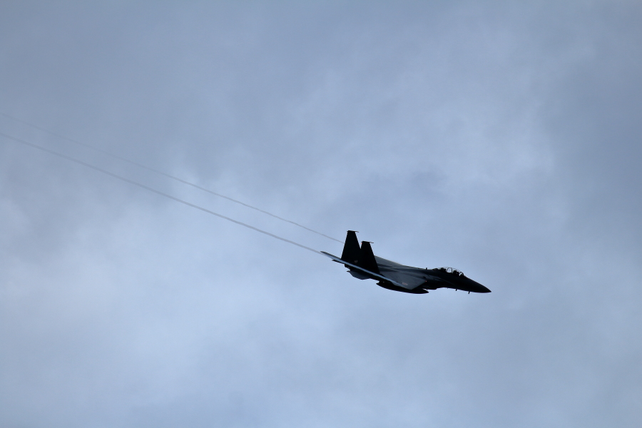 やっぱり新田原基地はいい 2015.9.17 しばらくぶりの新田原基地は新鮮でした。遠く離れた場所からF15の機影を眺めているとおっとんどるなー。早く行かなきゃと気持ちがはやってしまいます。昼過ぎに到着すると基地南の空はご覧の感じで北側は白い雲があるがさわやかな青空も広がっていた。 ありふれた構図ではありますが自分としては大満足!右に旋回中のF15。92-8068の機体番号の持ち主はどんな姿に変身しているのか早くお目にかかりたい。