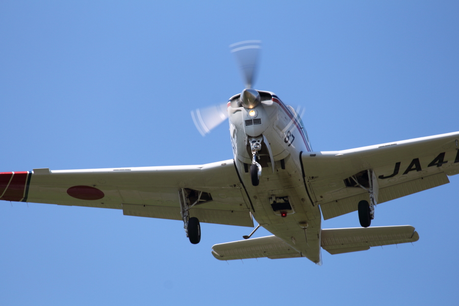 宮崎の航空大学校訓練機も着陸態勢に入ったコース下で見上げるとなかなか迫力があり、見ごたえ十分です。