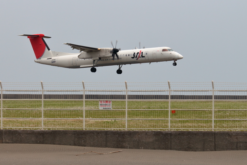 B737型機 だいぶ前から見ている機体だ。後方に次の着陸予定のdc8が偶然写っていた。着陸する飛行機は通常流し撮りで写す。構図とピント、シャッターチャンスに集中するから細かいものは見えていない。絞り優先 F8 SS1/1250