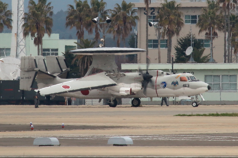 新田原基地にやって来ているE-2Cの主翼展開中2