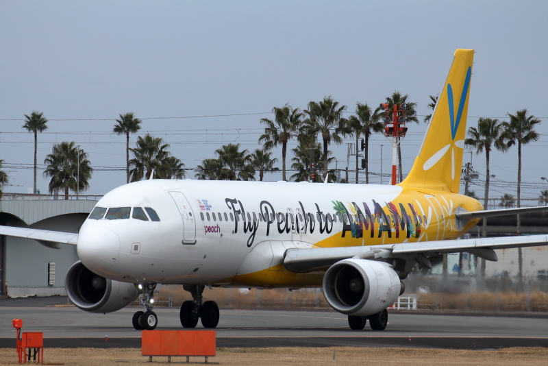 旧バニラエアのデザインを施したピーチアビエーションの特別塗装機